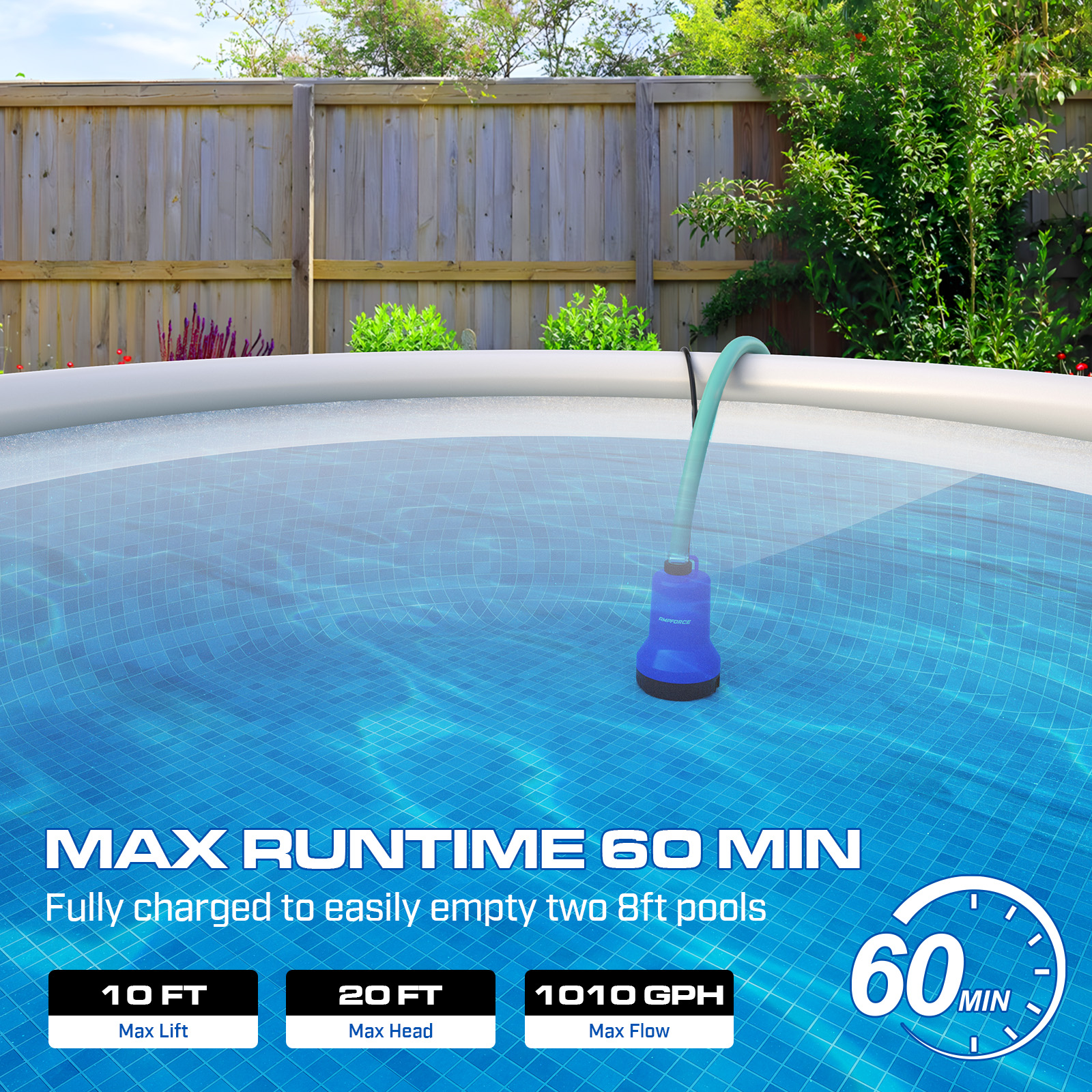 I’ve got this 20V cordless submersible pump for my inflatable swimming pool in the backyard, it’s a game-changer. Setting up a pool for the summer has never been easier. This little pump does an incredible job of moving water where I need it without the hassle of cords tripping me up. Plus, the battery life is surprisingly long ¨C it just keeps going.