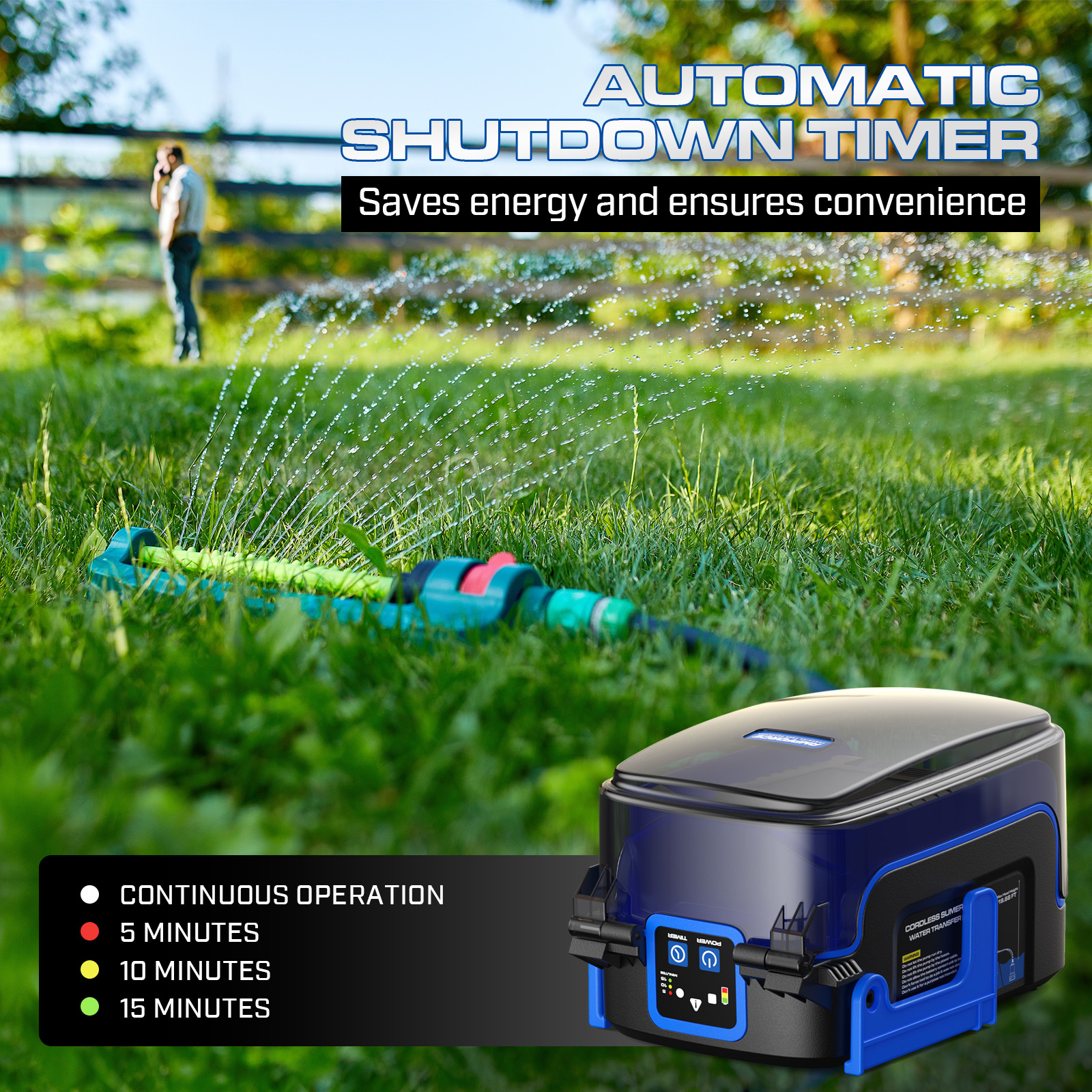 Enhanced Protection & Durability: The battery is housed in a separate, specially designed protective case that shields it from water and debris, extending the battery powered water pump’s life and ensuring safe operation. This thoughtful design feature ensures your pump withstands tough conditions and keeps running smoothly
